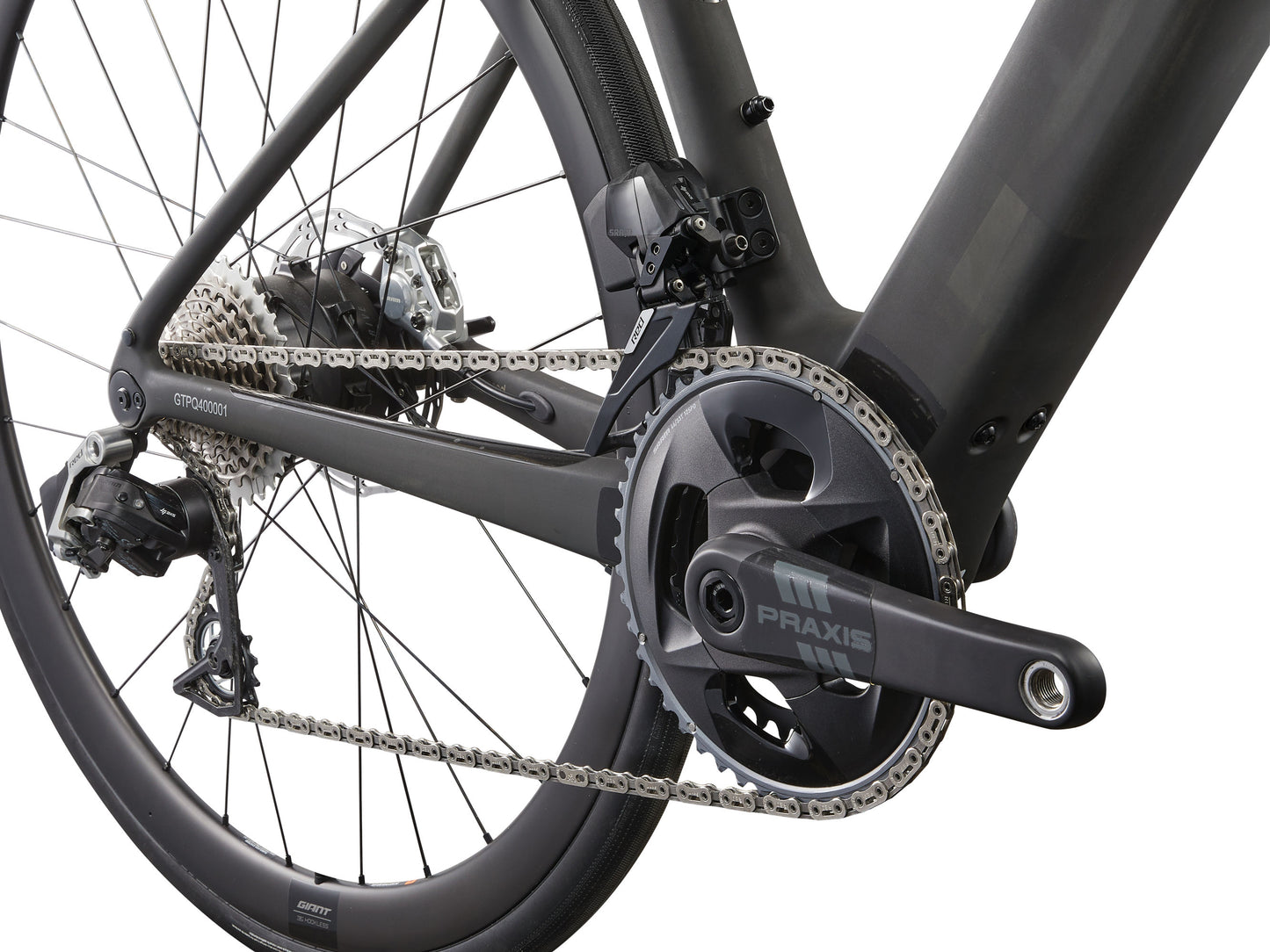 - Crankset: Sram Force X-SYNC 33/46T BCD107 chain ring Praxis E crank Carbon ISIS